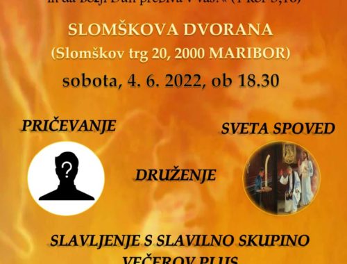 Vabilo na DUH ZAŽIGA »Sveti Duh napolni srce vstalemu Kristusu in potem iz te polnosti prekipeva v vaša življenja. Ko prejmete Duha, vas pritegne še globlje v Kristusovo srce, da lahko rastete v njegovi ljubezni, njegovem življenju in njegovi moči.«…