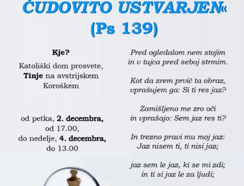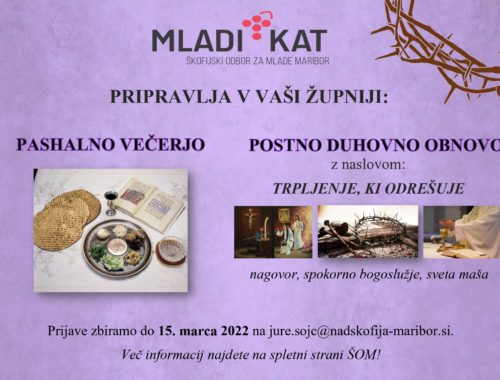 Dragi mladi, v ŠOM Maribor organiziramo duhovni vikend za srednješolce z naslovom: »Zahvaljujem se ti, ker sem tako čudovito ustvarjen« (Ps 139). Duhovne vaje so prestavljene s konca oktobra na prvi vikend v decembru (2.-4. 12. 2022). Prispevek za duhovni…