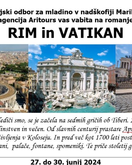 Škofijski odbor za mladino v nadškofiji Maribor in agencija Aritours vas vabita na romanje v RIM in VATIKAN. Ena od treh civilizacij, katere dediči smo, se je začela na sedmih gričih ob Tiberi. Z gričev se je mogočnost kulture mesta širila tudi do nas. Rim – edinstven in večen. Od slavnih centurij prastare Apije do …