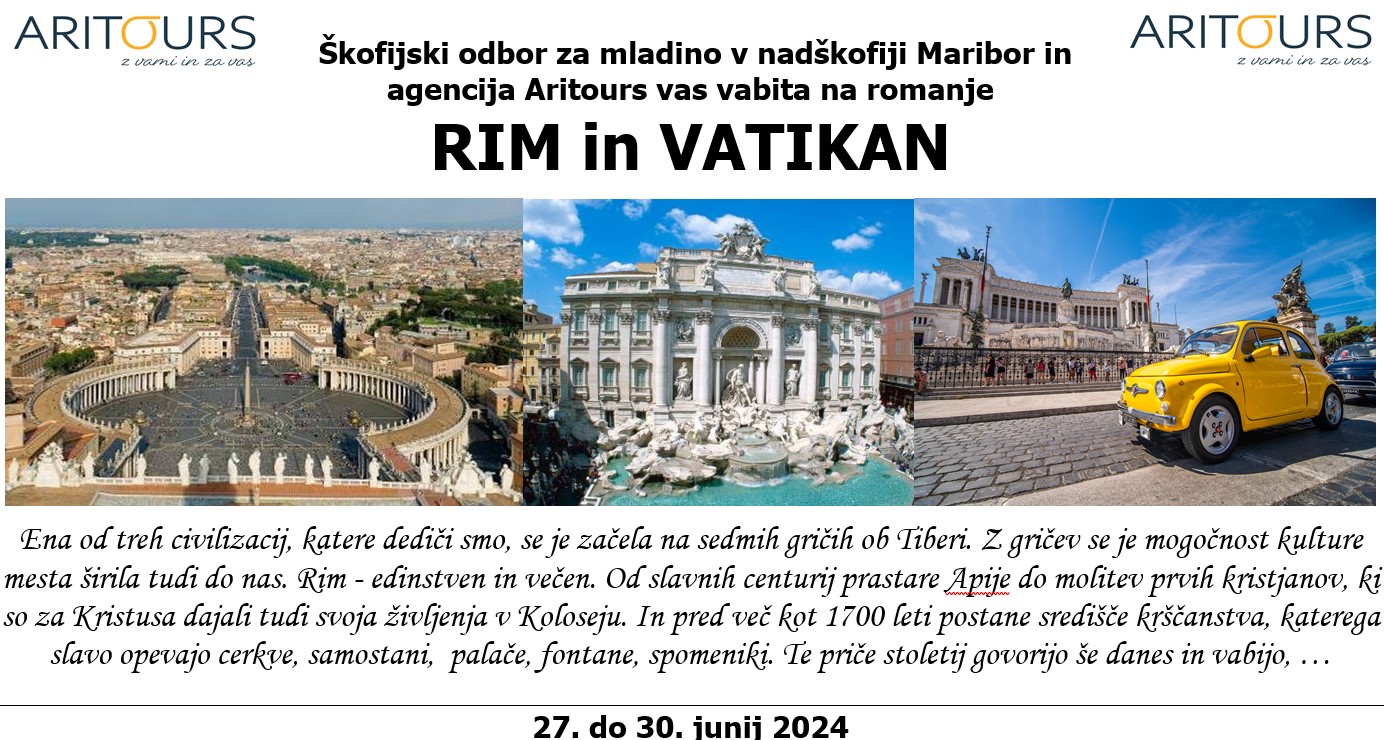 Škofijski odbor za mladino v nadškofiji Maribor in agencija Aritours vas vabita na romanje v RIM in VATIKAN.