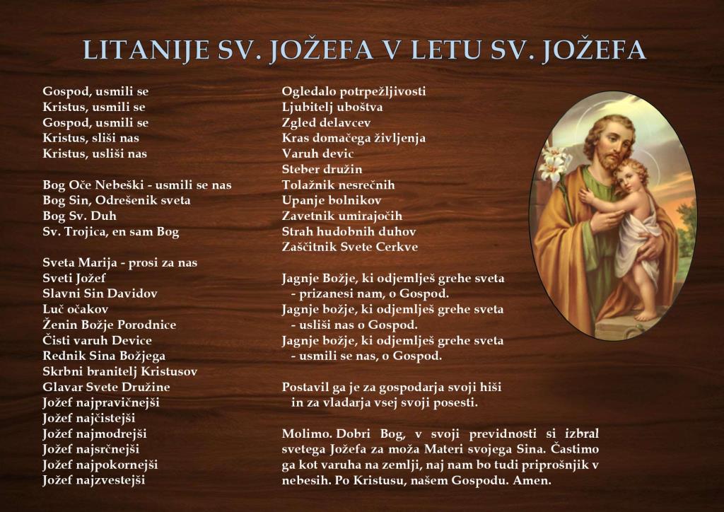 Dobri Bog, v svoji previdnosti si izbral svetega Jožefa za moža Materi svojega Sina. Častimo ga kot varuha na zemlji, naj nam bo tudi priprošnjik v nebesih. Po Kristusu, našem Gospodu. Amen.